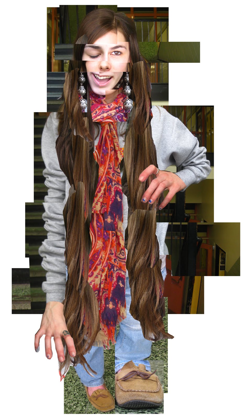 The person in my collage is a friend of mine. she agreed to do this product on the condition that I would not maker her look bad . She is also very nice and has nice qualities. Her name is chloe and she is a freshman . I took her picture in mrs FERLENDAS ART CLASS ROOM!!!